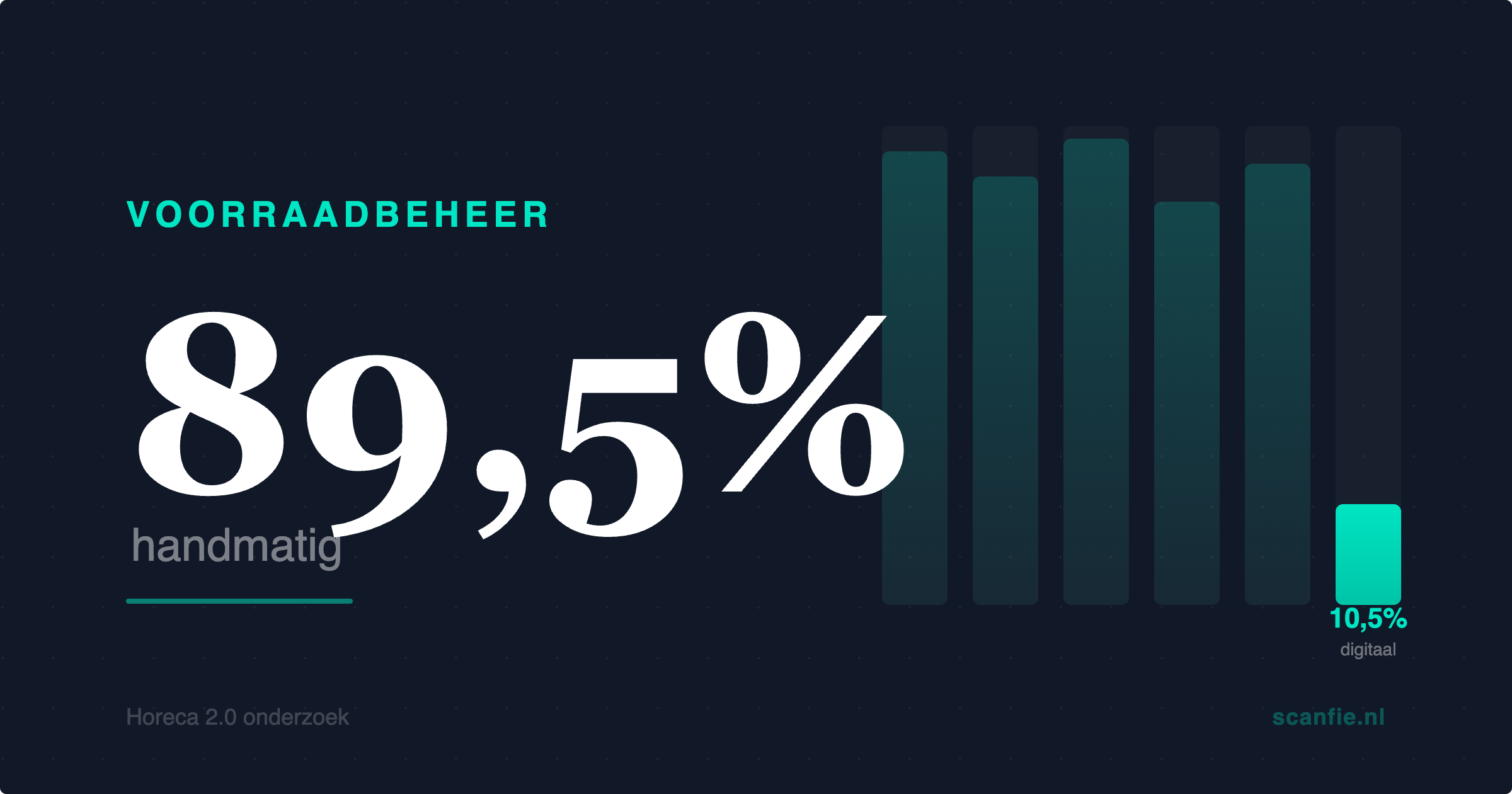 89,5% doet voorraadbeheer nog handmatig. 77,5% neemt bestellingen op met pen en papier. 55% monitort wachttijden…