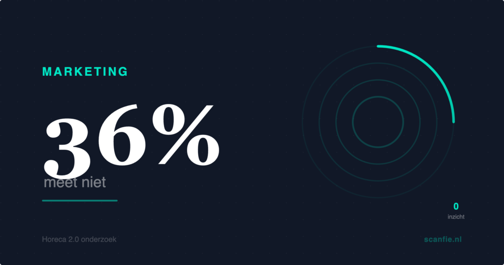 In het Horeca 2.0 onderzoek zien we dat 36% van de horecaondernemers helemaal niet meet of hun marketing effect heeft. Ze doen dingen, maar ze weten niet of die dingen werken. Daarnaast kijkt 26% alleen naar de algemene omzet. “De omzet stijgt, dus de marketing werkt.” Maar stijgt de omzet door de marketing, door het weer, door een evenement in de buurt, of door toeval?
