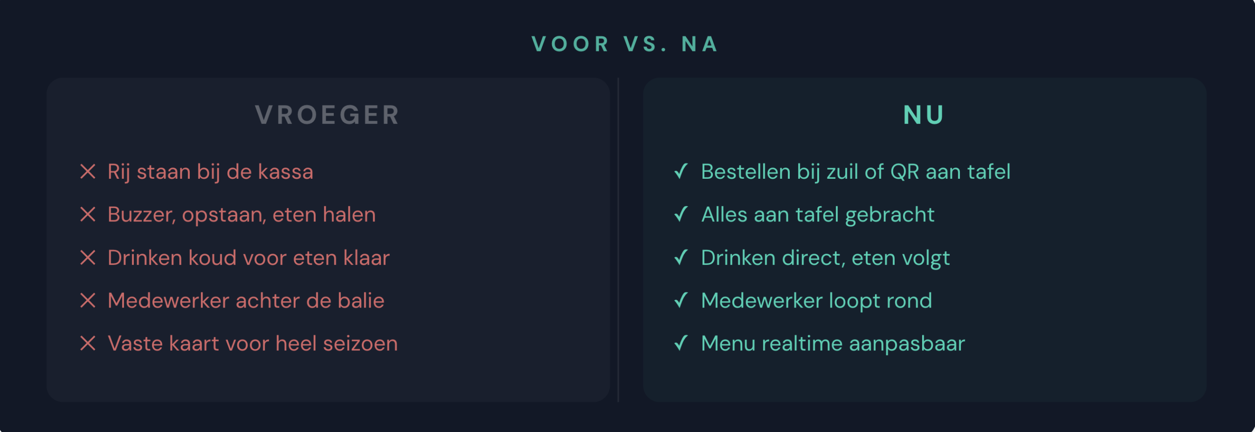 De keuze was uiteindelijk simpel: een forse investering in een volledig zelfbedieningseiland, met verlies van zitplaatsen en een kostenplaatje dat voor andere museumlocaties prioriteit had, of een slimme tussenoplossing met bestelzuilen en QR-codes aan tafel. Ze kozen voor het laatste. Niet omdat het de makkelijkste weg was, maar omdat het het beste paste bij wat het museum wilde zijn.
